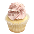 A light almond butter cake topped with a fresh raspberry buttercream.