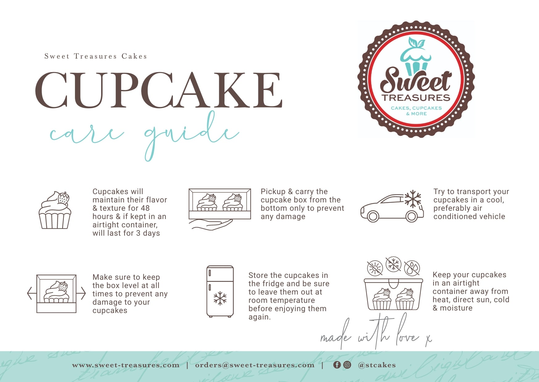 It is important to serve cupcakes at room temperature if they were placed in the refrigerator. We bake our cupcakes fresh every morning, and we recommend that you enjoy them on the day that you purchase them. To preserve freshness, place in an airtight container and refrigerate for up to 3 days.