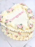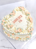 Celebrate in style with our vintage heart cakes—a whimsical homage to Jane Austen enthusiasts everywhere! Ideal for birthdays, book club adventures, or any occasion worth savoring. This charming creation captures timeless elegance with a modern twist. Adorned with vintage piping details and accented in vintage color of your choice and pale green hues, it's a cake that tells a story. Each single-colored beauty showcases those signature nostalgic touches that transform ordinary moments into extraordinary memories filled with joy and literary charm.